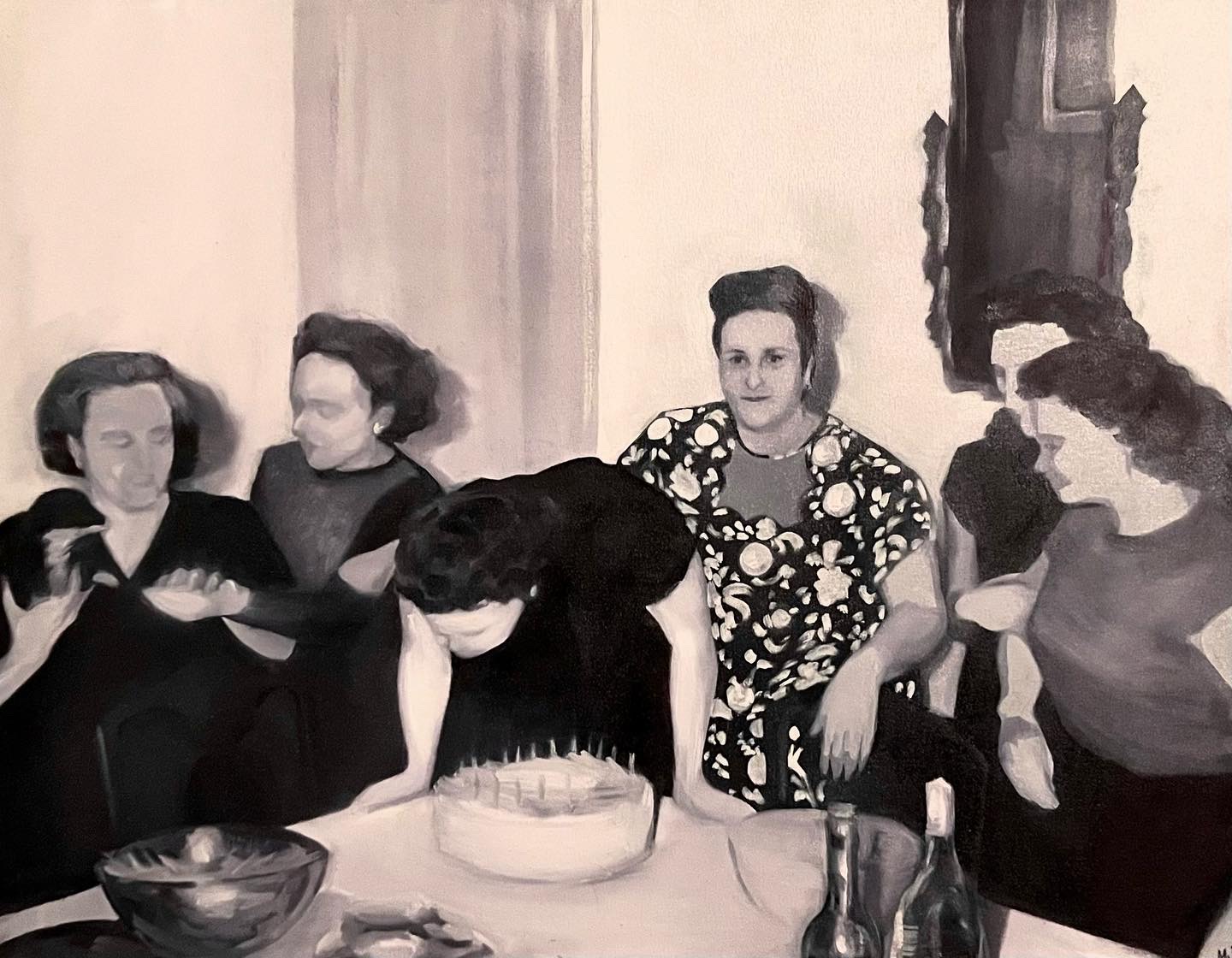 I owe so much Great Grandmother Alice, my mother’s caregiver, my sister’s namesake. This painting is from an old photograph of Alice throwing her sister a birthday party. The stories of this woman are legendary, a Brooklyn woman who stood her ground and understood a good time.