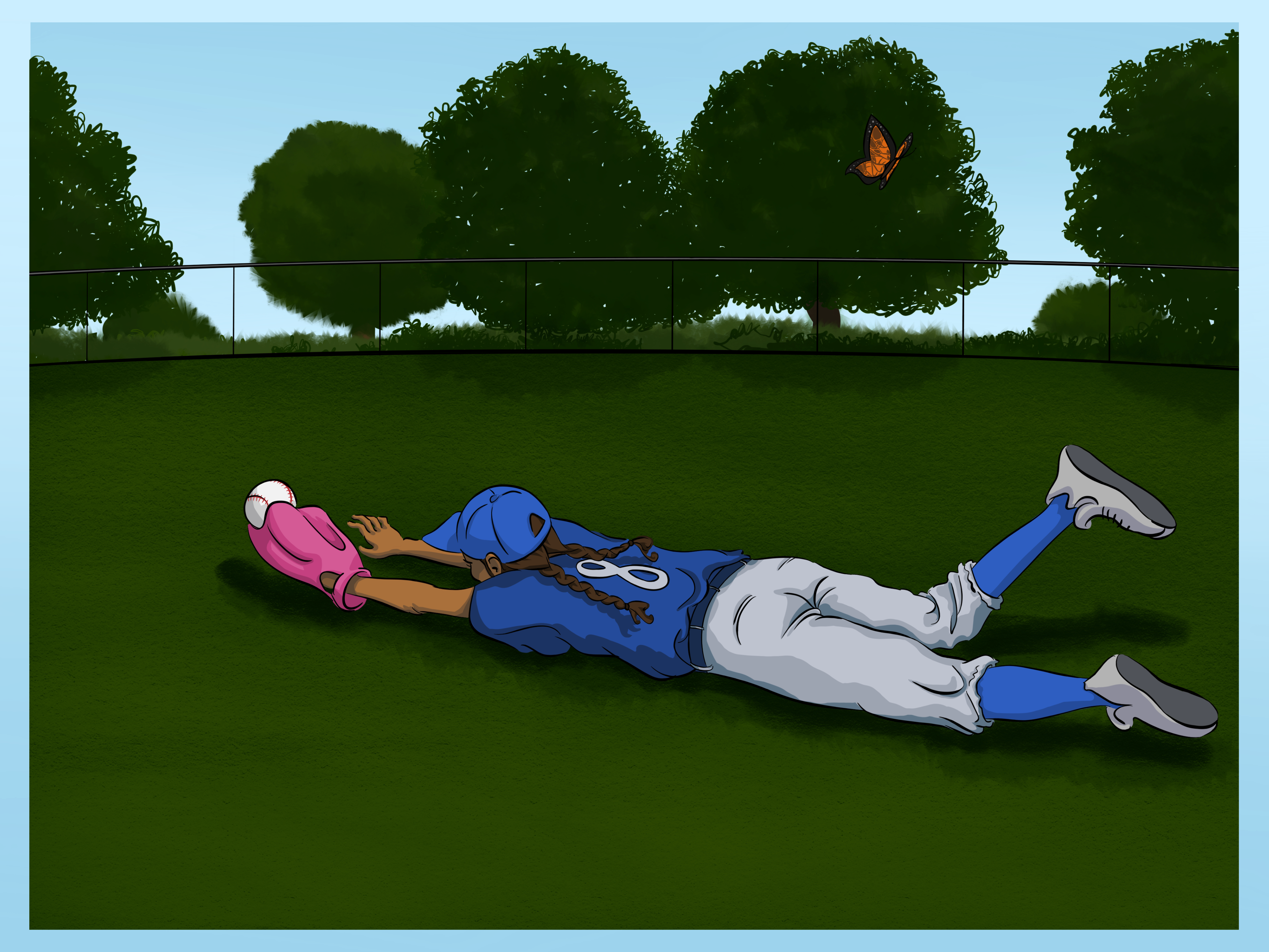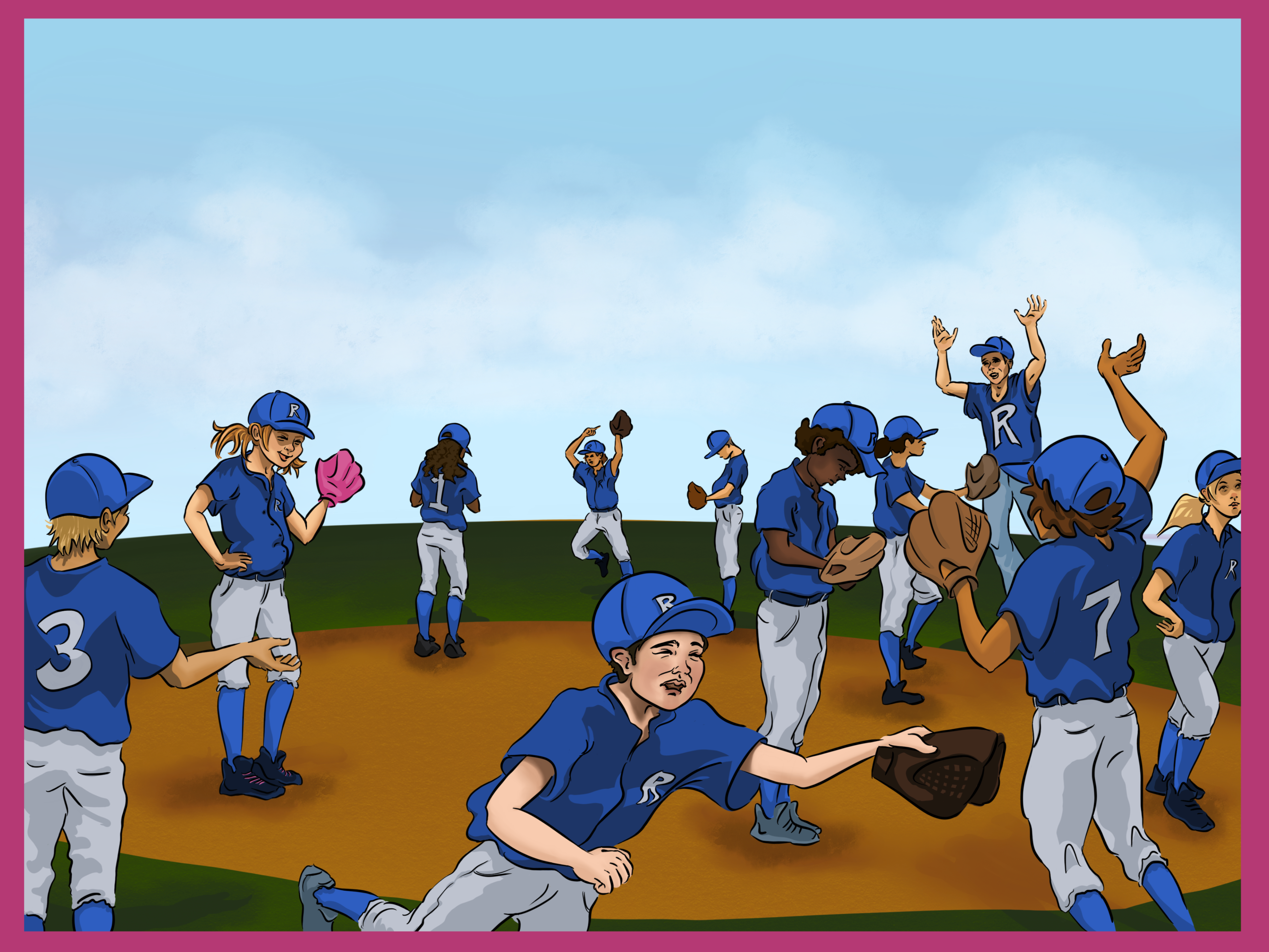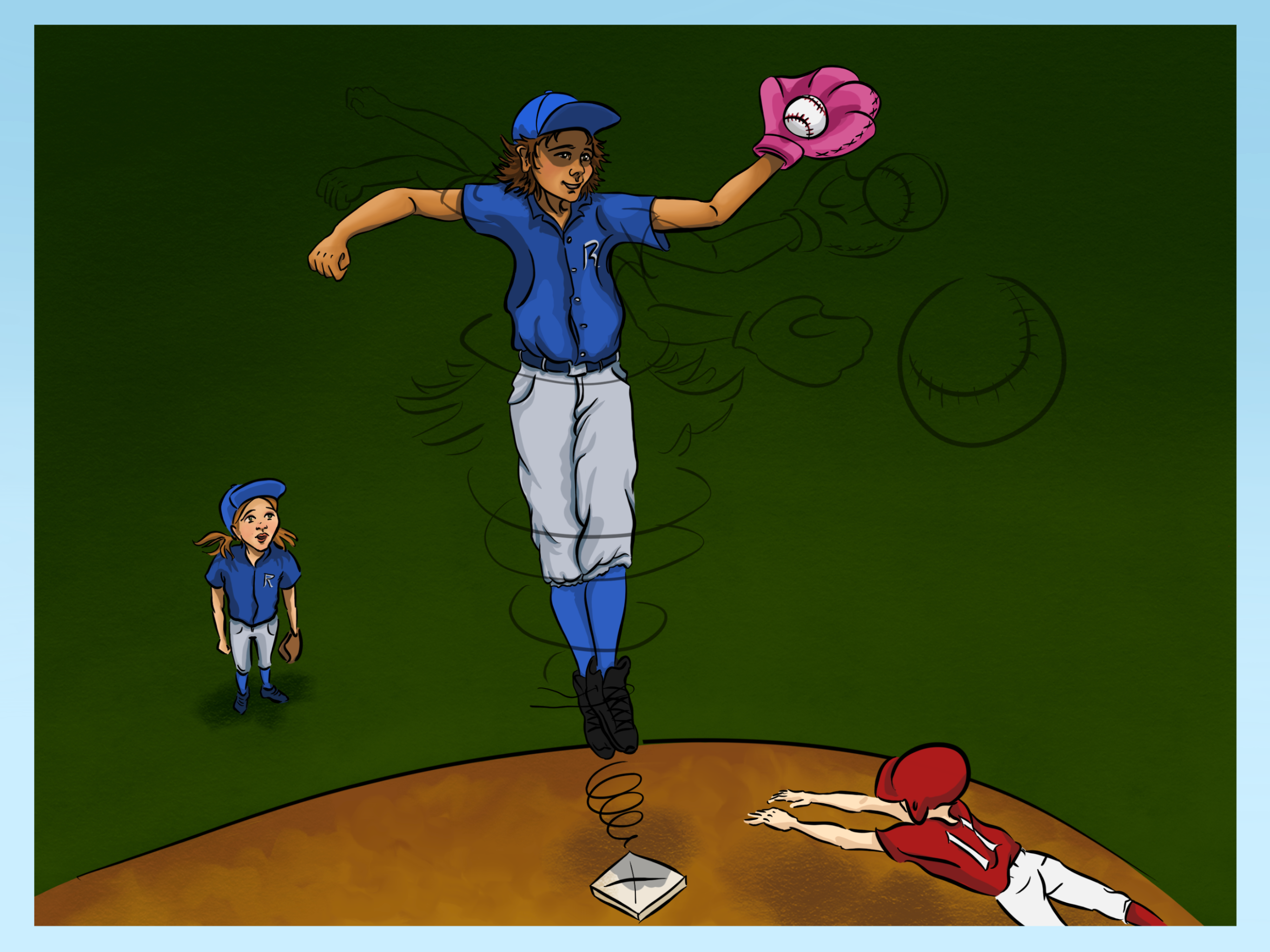 I had the opportunity to illustrate novelist Peter Cavalier’s first children’s book, made in honor of his granddaughter Cora. The story features the pink baseball mitt gifted to her on her last birthday, she soon learns it’s a gift best served shared.