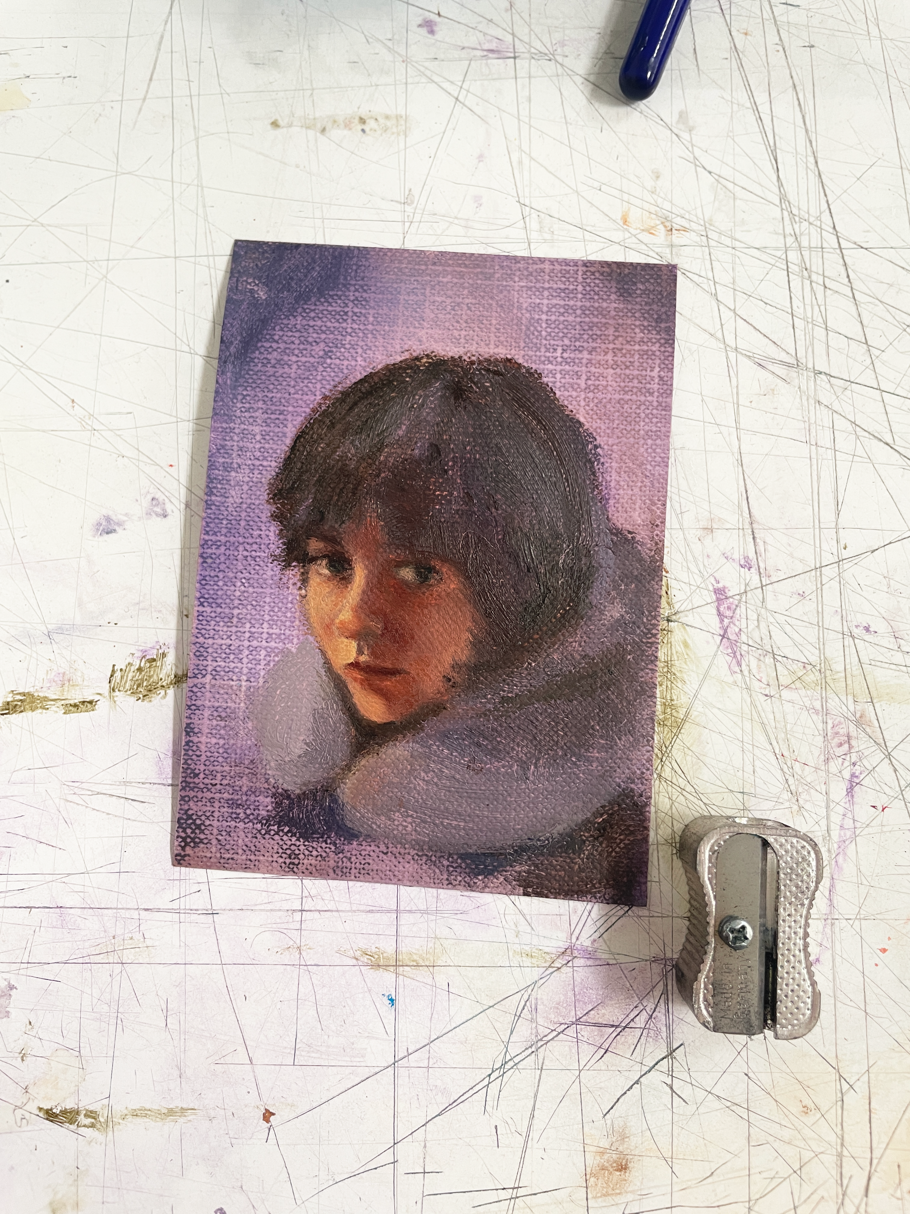 oil on canvas paper 3.5 by 2.5 inches March 2022 from reference